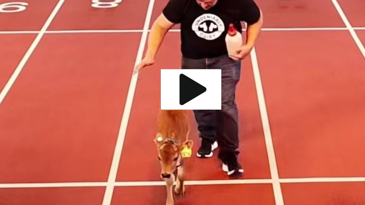 In case you are wondering, no this calf didn't really wander onto the track…but was brought in to break a World Record! With no competitors around, the judges went easy this time (lane-cutting was allowed). And just like that, we now have the fastest calf ever!