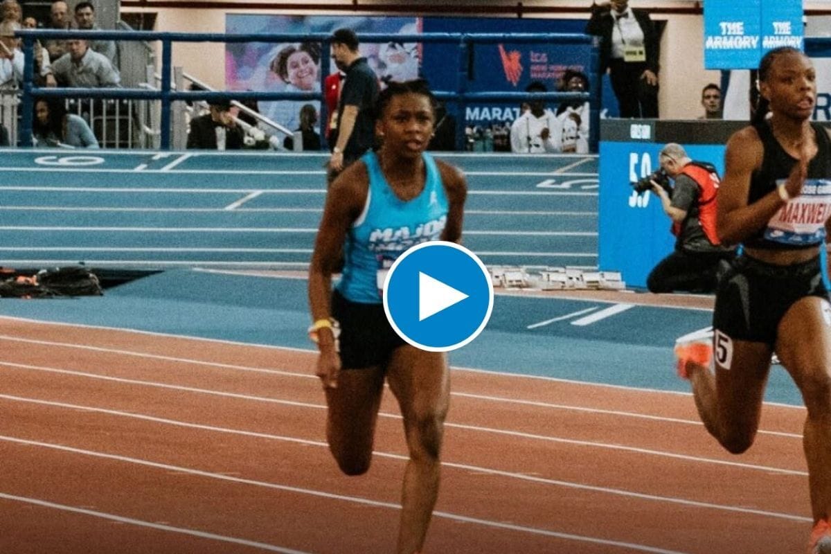 Melanie Doggett just won the indoor 200m at the Galleria Games in 23.25s, in the age category of 13-14. And can you believe, she is now just 0.03 s away from shattering Sanya Richards-Ross’ 23-year-old U18 indoor American record? Watch her stunning race above!